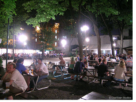 ここは、家の近所にあるチェコスロバキアのビア・ガーデンで、最近色々な雑誌などに取り上げられて大繁盛しているんだよね。